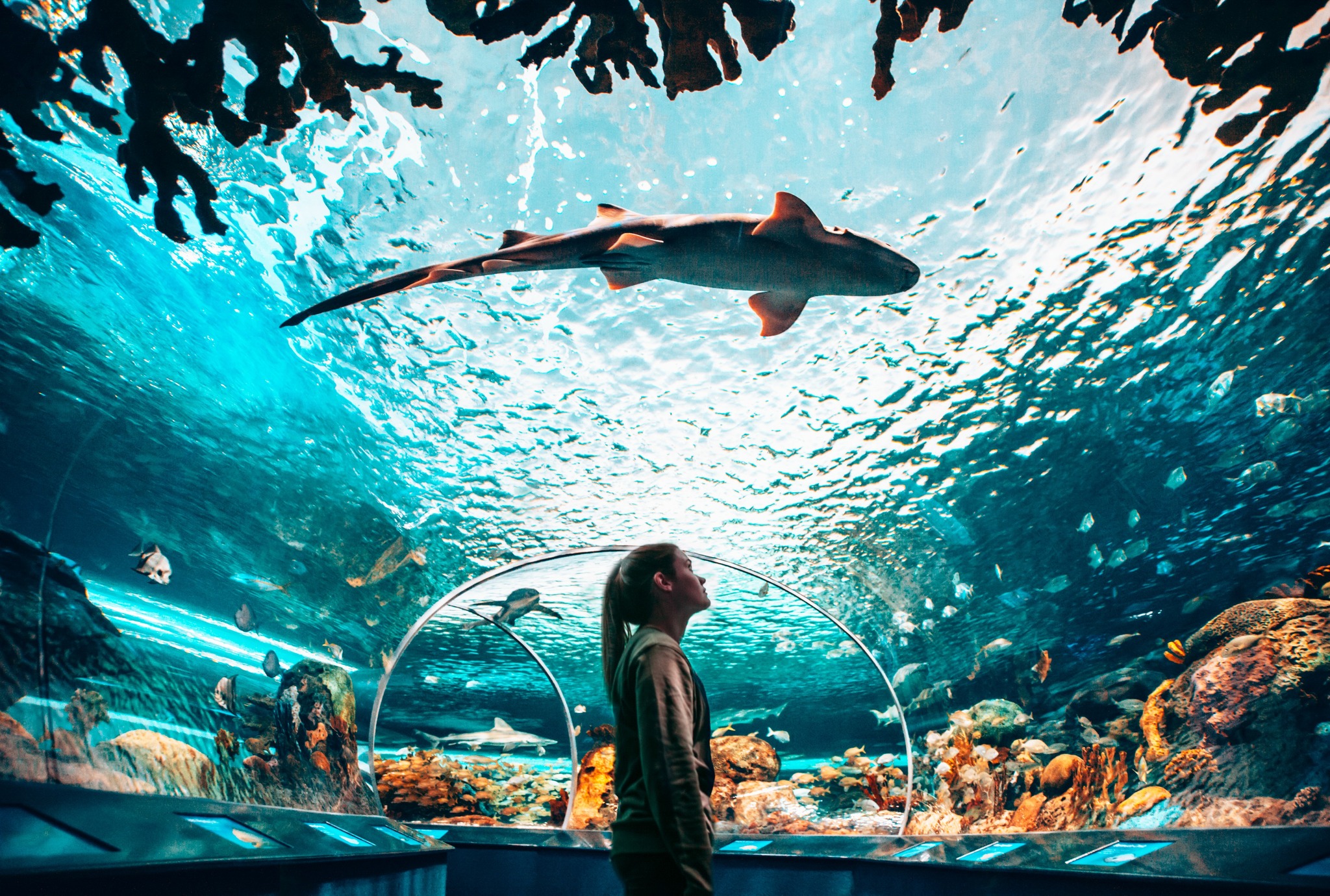 走入最受歡迎的全長 97 公尺海底隧道,鯊魚、魟魚近距離霸氣游過,感受彷彿漫步海底的震撼體驗!