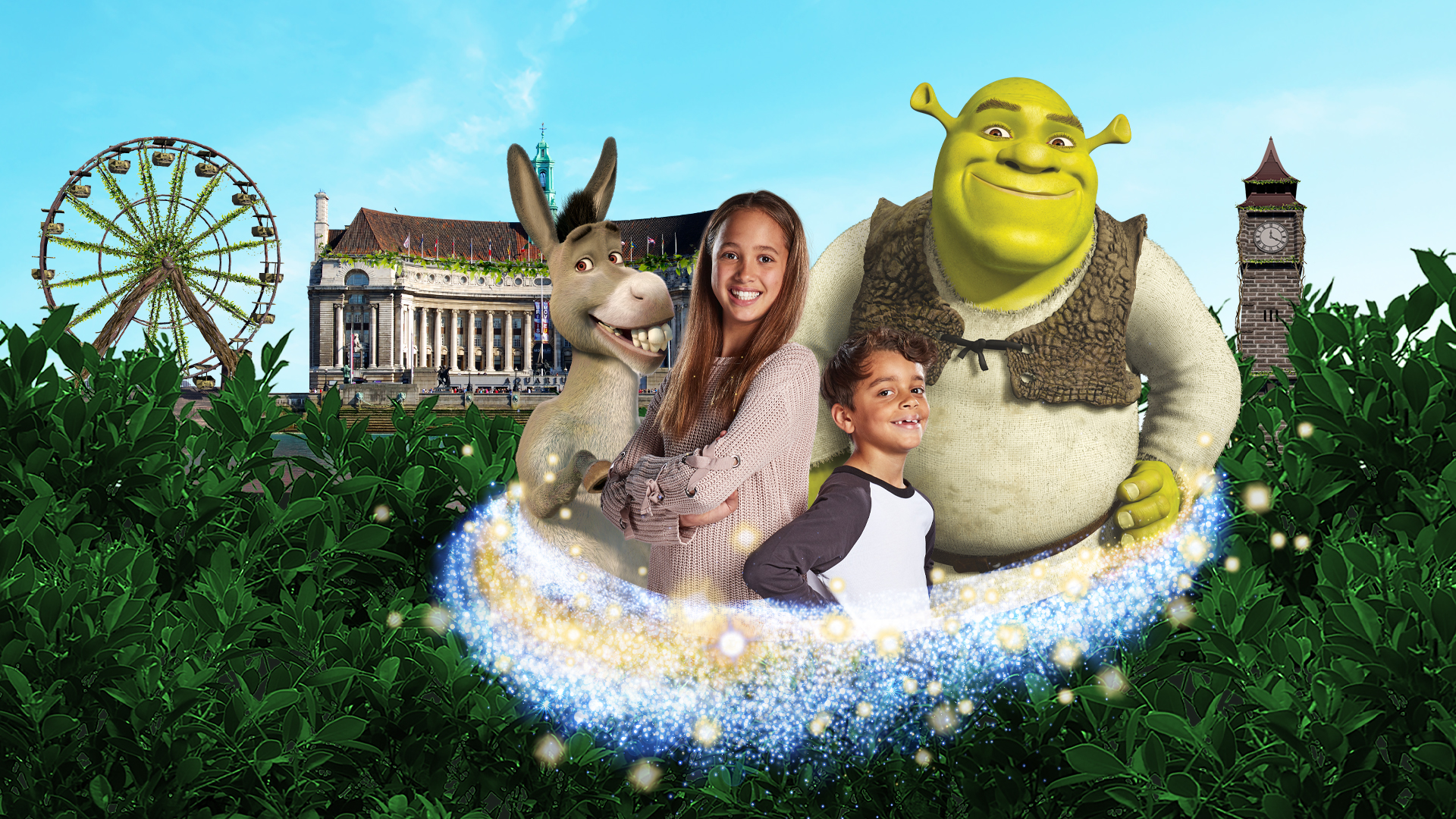 世界上第一家史瑞克主題樂園.重現夢工廠影片中的夢幻世界.搭乘4D飛行巴士之旅.前往魔法世界